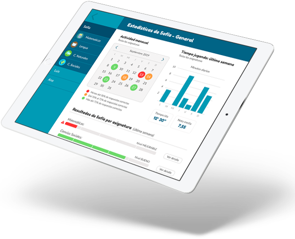 Nuestras estadísticas en tiempo real te permiten saber si tu hijo ha entendido bien cada tema y te ofrece actividades personalizadas si necesitan reuferzo.
